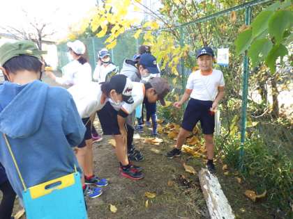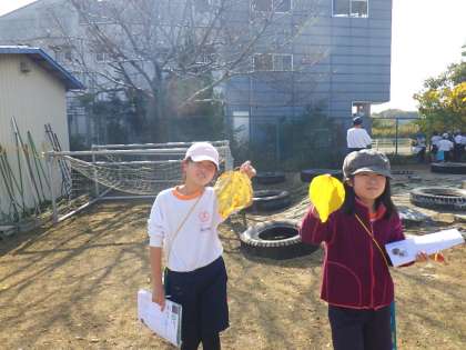 4年生の理科では、秋の様子を観察しに運動場に出てきました。