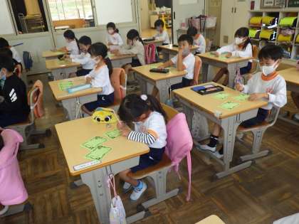 1年生は、「きらり友だちカード」にお礼の言葉を書きました。来年2年生になったら、今日を思い出してね。