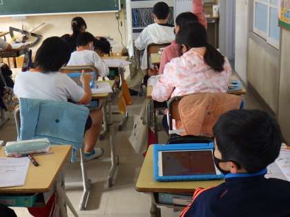 タブレットを使って調べたことを発表して、意見をまとめていきました。
