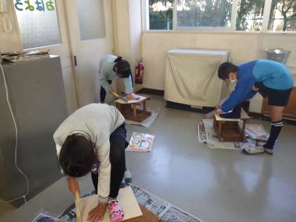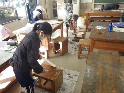4年生の図工の「ギコギコクリエーター」では、のこぎりを使って板を切っています。