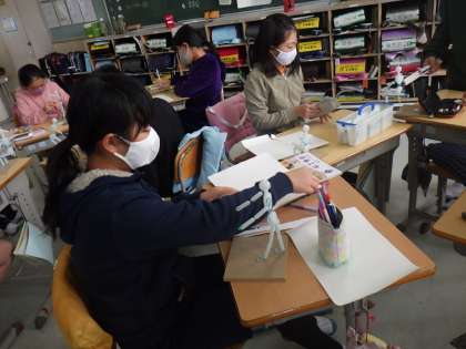 6年生の図工では、「12年後のわたし」と題して、12年後の将来、自分がどんなことをしているか想像して、ポーズを粘土彫塑で表現します。
