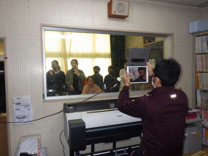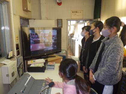 今日は、放送室と教室をつないでリハーサルをしました。
