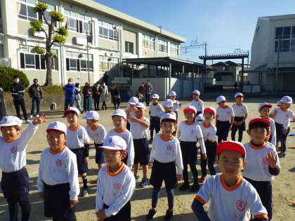 準備運動をしているうちに、参観の保護者が続々と集まってきて、子どもたちは、少し緊張気味です。