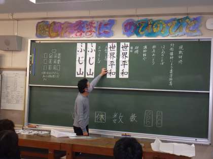 今年度の書写指導は、書道家の安藤先生にお願いすることになりました。本校ではおなじみの先生です。