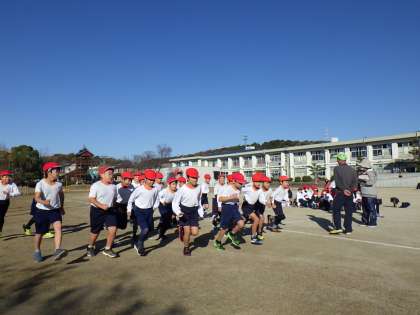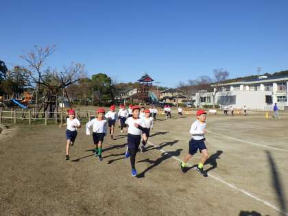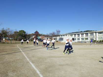 3・4年生は、7分間走です。一緒に走ってみましたが、1・2年生の5分間走から2分増えただけですが、随分長く感じて、息もあがりました。