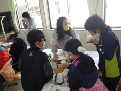 そこで、授業では教師が実演し、調理実習は家庭で取り組むことにしました。