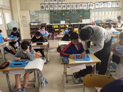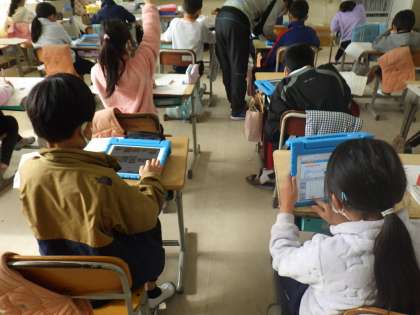 これまでは、学校で1クラス分の40台しかタブレットがなかったので、こういうときも事前に予約をしてから使用しましたが、今は一人一台あるので、すぐに検索できて便利です。