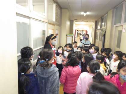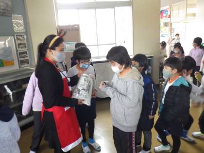 ALTのキャティ先生が、英語で会話をしたらくじ引きをして、当たりがでたらしおりをプレゼントという、クリスマス企画をしてくれました。