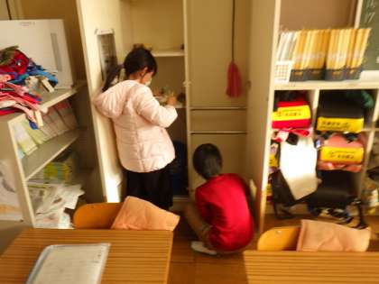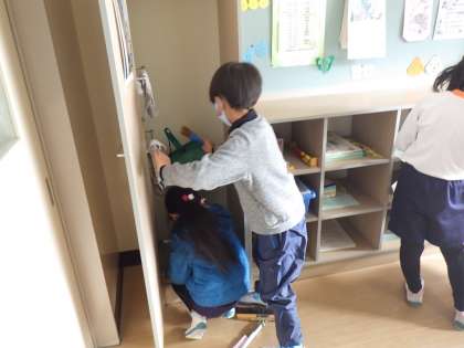 ほうきについたごみを取り除いたり、ロッカー内をきれいにしたりしました。