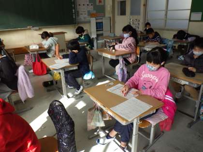 3年生では、算数と国語の月例テストを実施しました。