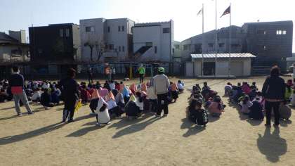 今日は避難訓練を行いました。子どもたちには予告をしておらず、突然の訓練でした。掃除の時間だったため、それぞれの掃除場所にいましたが、高学年が指示を出して避難することが出来ました。