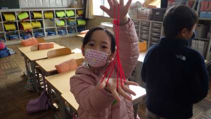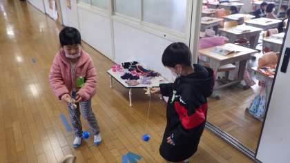1年生は生活科の学習で「日本の昔の遊び」を学習しました。普段やらない遊びが多く、苦戦している様子でしたが、何度もチャレンジしてできるようになり、遊びの楽しさを実感することが出来ました。