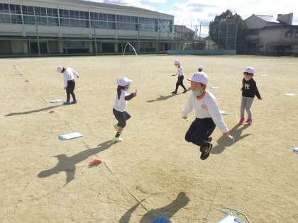 八の字とびを競う「なわとび集会」とは別に、個人のなわとび賞にも取り組んでいます。