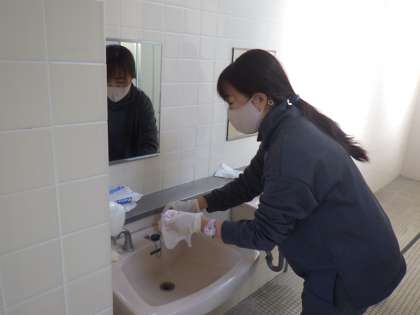 広い学校では、消毒作業も限界がありますので、手洗いをしっかりするように指導をしています。