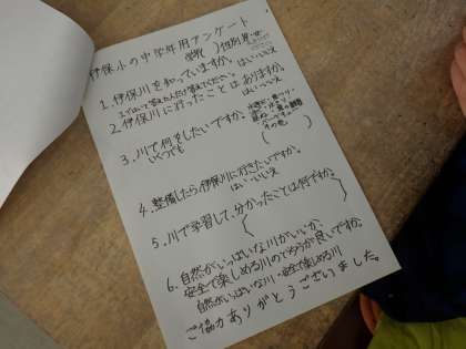浄水北小学校の5年生から、伊保川についてのアンケートの依頼がありました。