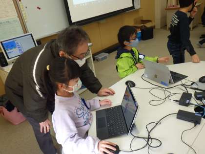 3年生は、ICT支援員とスクラッチというプログラミングソフトの学習をしました。