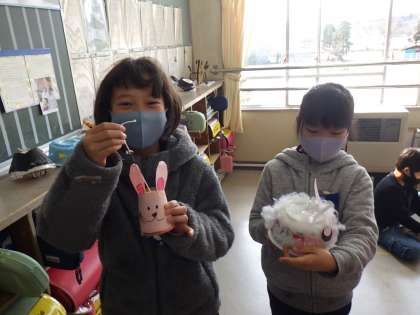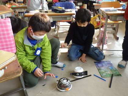 3年生の図工「ゴムゴムパワー」では、ゴム動力で動くおもちゃを作りました。