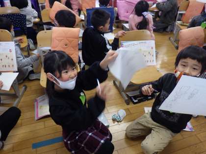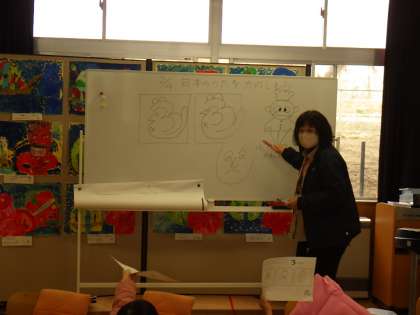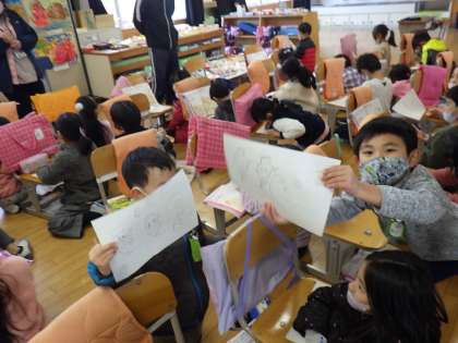 1年生の音楽では、「さんちゃんが」というお絵描きうたを習いました。