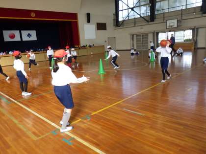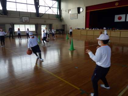 両手を使って人の間をじぐざくに上手にドリブルしていました。