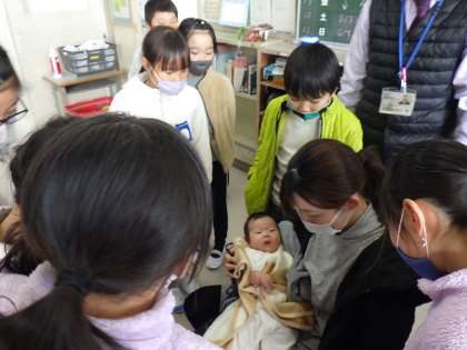 3年生の教室に12月に生まれたばかりの赤ちゃんがやってきました。