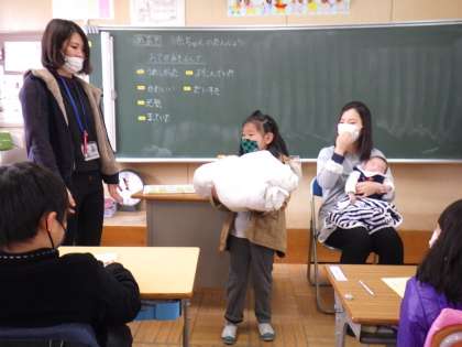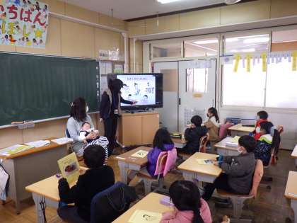 12月に生まれたばかりの保健の先生の赤ちゃんも特別ゲストで登場し、1年生は大喜びでした。