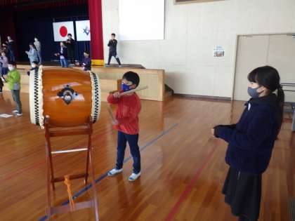 3年生の「6年生を送る会」の出し物は、和太鼓をつかったエールのようです。