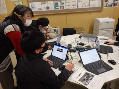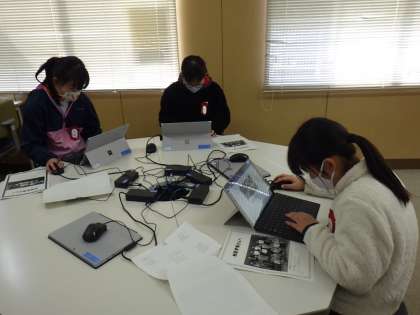 体育館の看板を作ったり、6年生へのプレゼントをタブレットで作ったりしています。