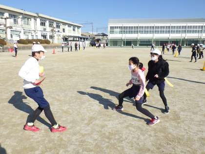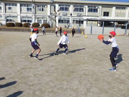 6年生の体育では、タグラグビーをしています。