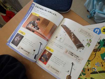 4年生の音楽では、日本の楽器を親しむ学習をしています。