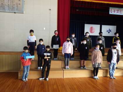 4年生は、6年生に向けてクイズをします。