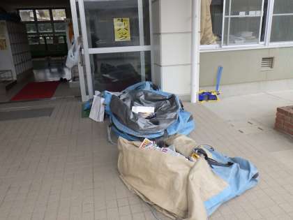 西昇降口(1・2年生昇降口)前に写真のように回収袋を用意してありますので、そこに入れてください。