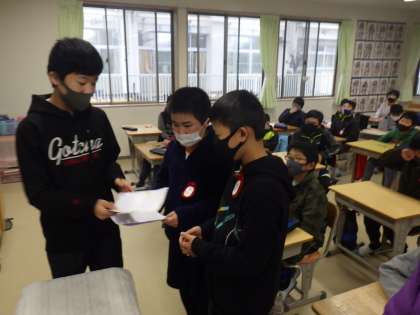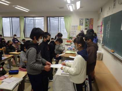 6年生は、5年生が中心となって行ったフレンド遊びのときの企画・運営について、アドバイスカードを書いて渡しました。