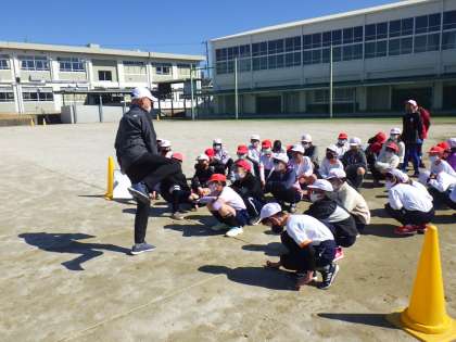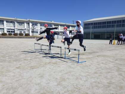 ハードルを越える足の形などをチェックしながら、何度も挑戦しました。