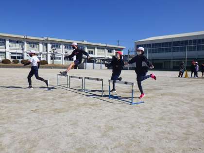 それぞれの歩幅にあったハードルを選び、順に跳んでいます。