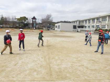 4年生が、運動場で学年レクでドッヂボールやおにごっこを楽しんでいました。