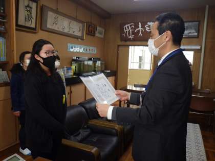 人権に関する作品コンクールに入選した子たちの表彰伝達を校長室で行いました。