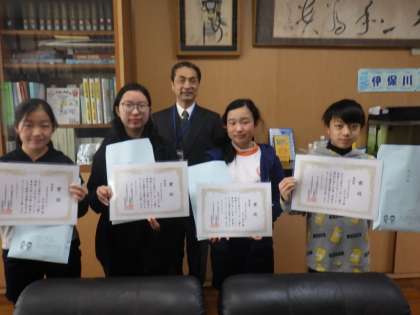 うれしいことに標語の部で2人、書道の部で2人の計4人が入賞しました。