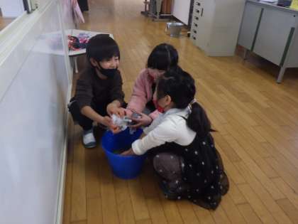 教室にワックスをかけるよ(1年生)