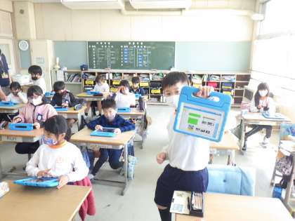 タブレットの発表ノートを使って、インターネットで検索した画像を貼り付けて作成しています。