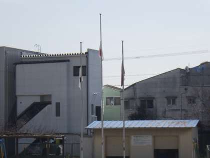本日、弔意を表すために半旗を掲げ、教頭先生の典礼により全校児童で黙とうをささげました。
