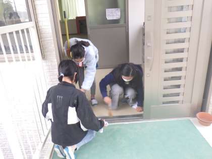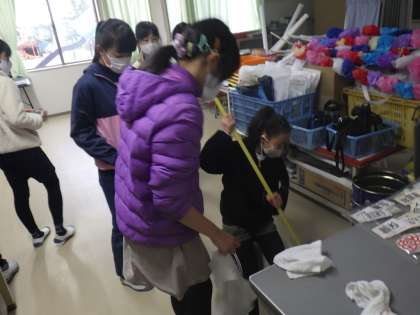 家庭科で大掃除(5年生)