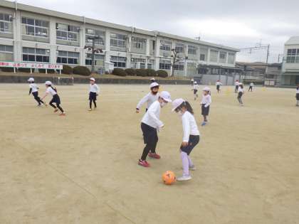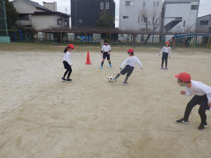 2年生の体育では、サッカーを学習しています。