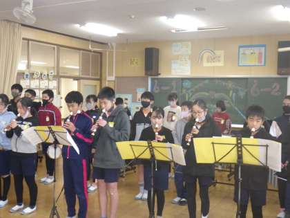 6年生の子たちが、音楽の授業で準備をしてきた「感謝の気持ちを音楽にのせて」発表会を担任の先生たちを招待して開きました。