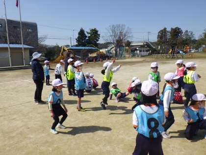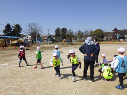 1年生の体育では、リレーをしました。