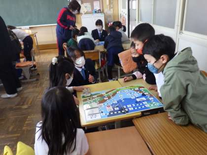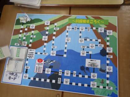 2年生は、豊田高校の科学部が作った「川探検すごろく」をして遊びました。