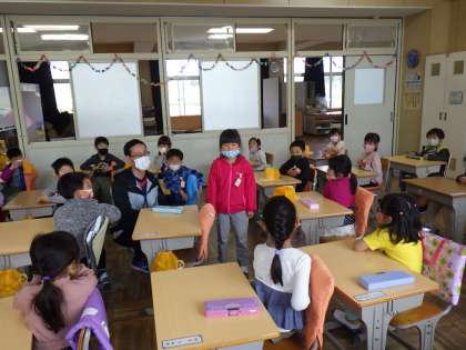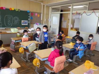 「わたしの名前は〇〇です。好きなものは〇〇です。」と全員がクラスの子に伝えることができたようです。