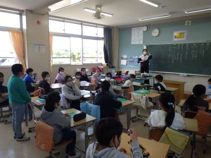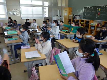 それぞれが考えてきた級訓を出し合い、どれがよいかを考えました。発表者の話しをよく聞き、真剣に話し合う姿がありました。