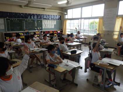 今日は、4年生の道徳で交代をしました。初めてなので、ちょっと緊張ぎみでしたが、どちらのクラスのしっかり手をあげて、活発に意見交換ができました。