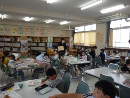 3年生は、図書館司書の先生と本の分類の仕方について教えてもらいました。