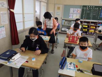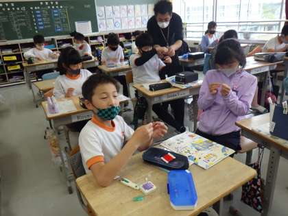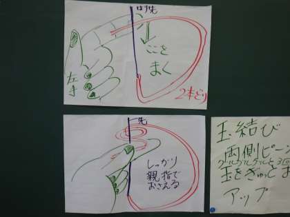 5年生の家庭科では、玉止め、玉結びに挑戦中です。